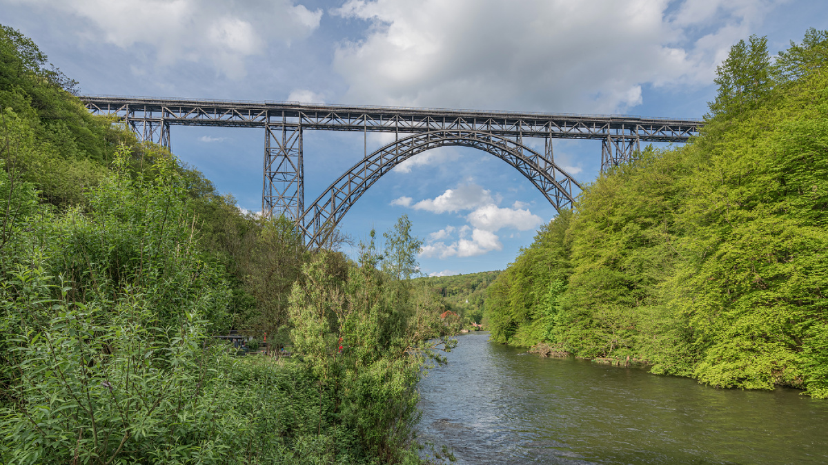 Мюнгстенский мост построили в 1897 году опасным способом сборки без подмостей - когда каждая уже сооруженная часть моста служила краном для сооружения следующего участка. Работы велись одновременно с обеих сторон. На всю конструкцию ушло 950 000 заклепок и 5000 тонн стального профиля. Высота моста - 107 метров, длина - 465 метров. Подписывайтесь на канал, у нас интересно! И не забудьте заглянуть на сайт Мировые Мосты ⇢