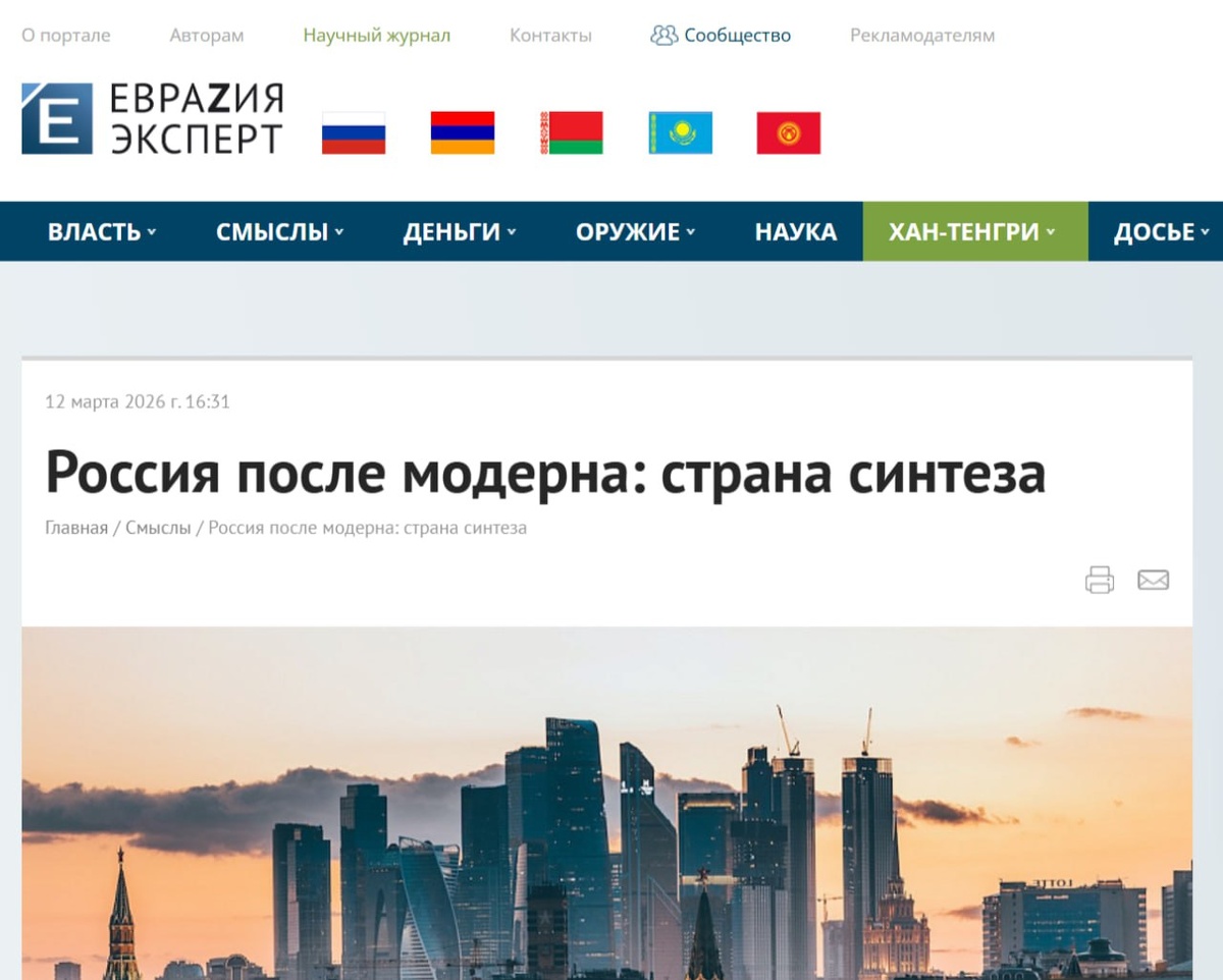 В эпоху глобальной турбулентности выигрывает не тот, кто копирует чужие модели, а тот, кто умеет синтезировать технологический прогресс с уникальным культурным кодом территории. Основатель ICS Consulting Алексей Пастухов в своей новой статье для издания «Евразия.Эксперт» — «Россия после модерна: страна синтеза» — анализирует фундаментальные сдвиги в развитии страны. Для руководителей это не просто философский текст, а концептуальная рамка для долгосрочного планирования. Полный текст статьи доступен на сайте издания «Евразия.Эксперт»: https://eurasia.expert/rossiya-posle-moderna-strana-sinteza/ Ключевые тезисы: Завершение эпохи заимствований. Модель догоняющей модернизации исчерпана. Россия переходит к этапу синтеза, где западные технологические стандарты соединяются с восточными рыночными векторами и внутренними традиционными ценностями. Технологический суверенитет как вопрос выживания. Автор подчеркивает, что в «мире после модерна» критически важно владеть полным циклом технологий