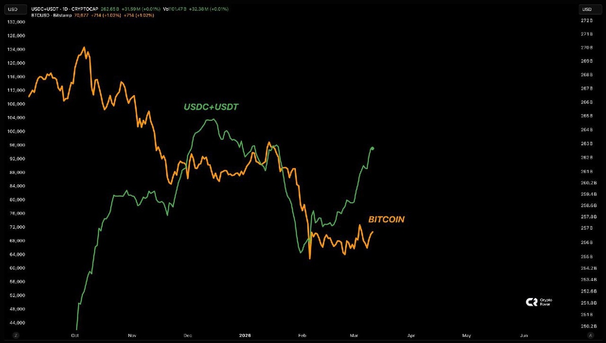 Новая надежда: капитализация стейблкоинов стремительно восстанавливается, в то время как BTC демонстрирует отставание