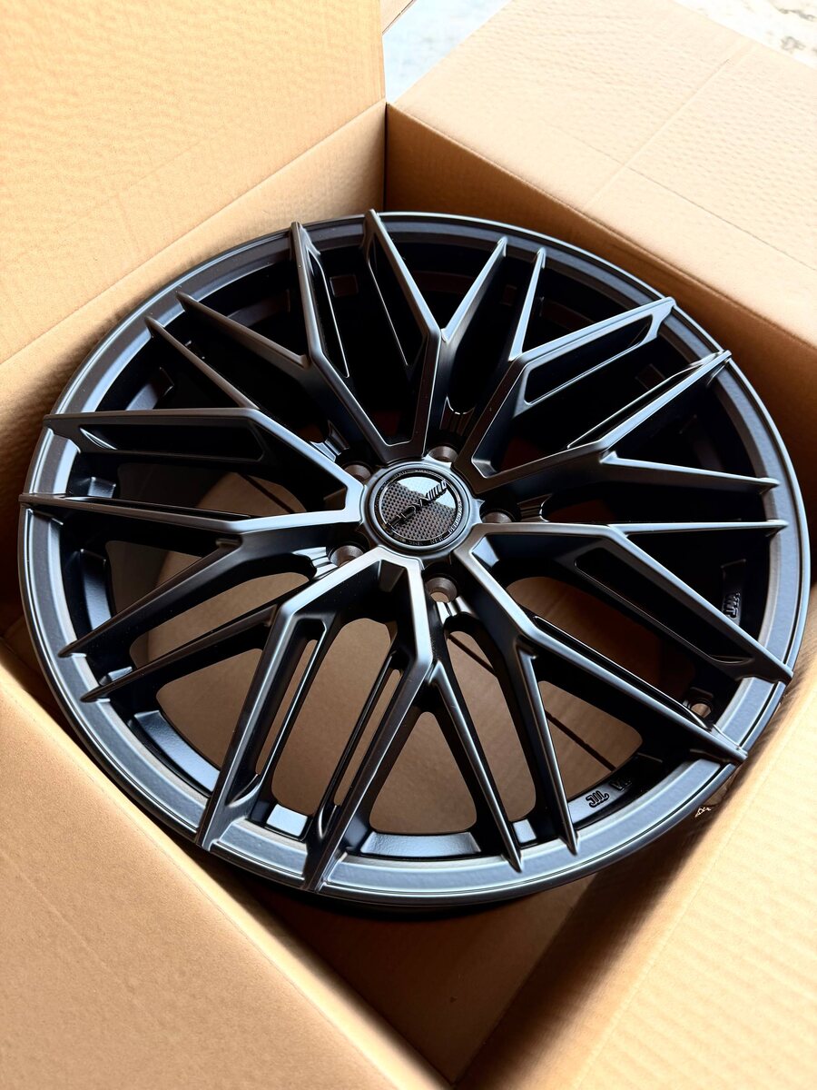 Стильные новые литые диски премиального дизайна в матовом черном цвете, который придает автомобилю дорогой и спортивный вид
