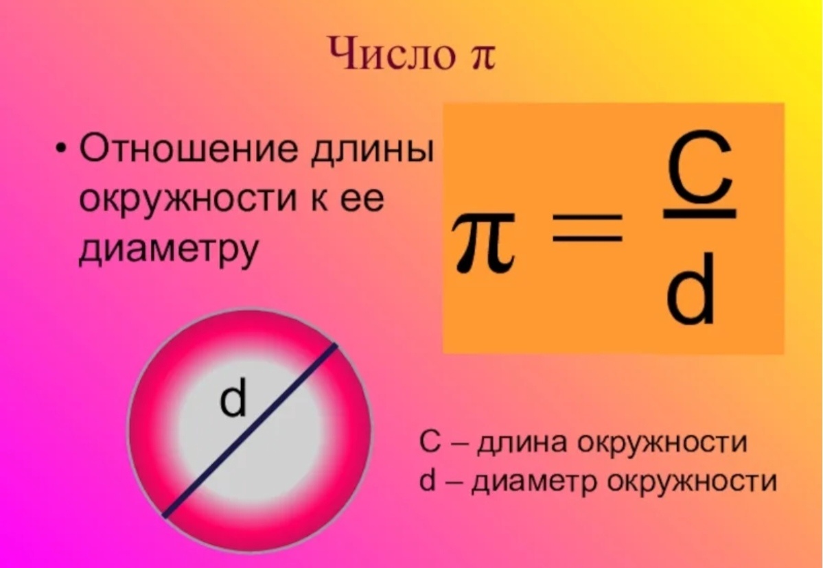 Число π — математическая константа, выражающая отношение длины окружности к длине ее диаметра.