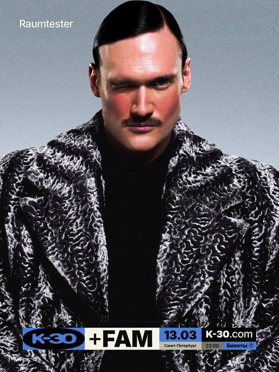 Совместный ивент К-30 и лейбла FAM. Три в одном: вечеринка, презентация релиза и открытый разговор. Длинные сеты с погружением в поджанры актуального техно от Никиты Забелина (Resonance), Раумтестера (ПИР) и Примитива (Roots United) — всю ночь, по очереди, а возможно даже и вместе. Презентация релиза Listening Forms от FAM: от спокойных форм до клубного прайм-тайма. Специальный гость Shine Grooves. Опен-толк «экспериментальная музыка в клубах» вместе с платформой Music Camp. 🎫 Билеты 📆 13 марта,21.00 📍 К-30, ул. Красного Текстильщика 10-12 АШ. Санкт-Петербург (Вход с Синопской)