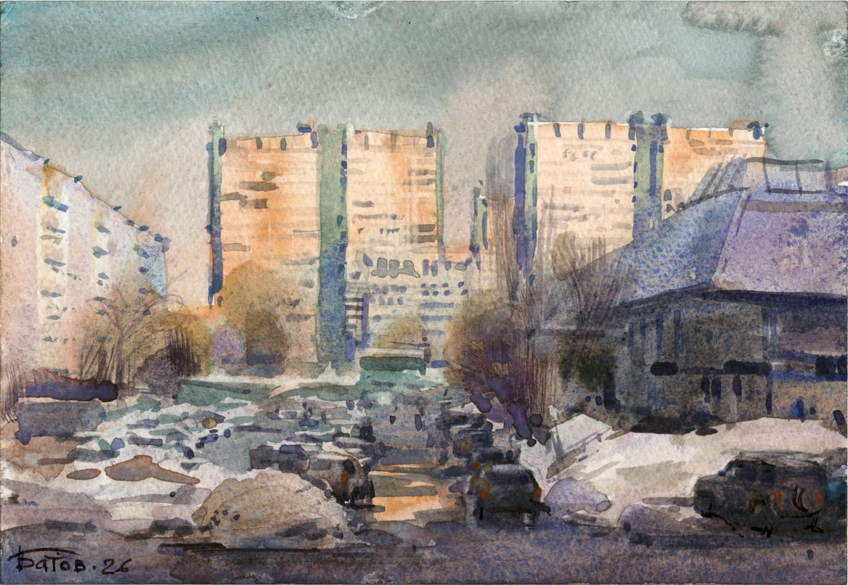20260312 Вильнюсская улица / Vilnyusskaya street, Moscow / 13x18 / plein air watercolor