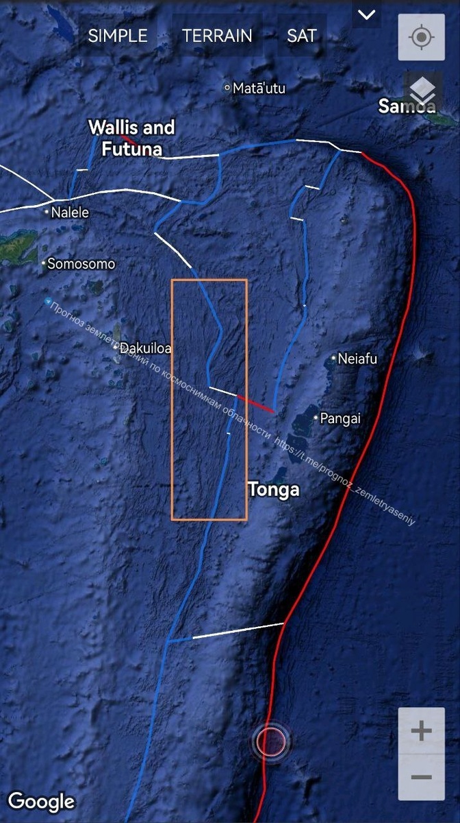 Есть вероятность землетрясения до М6.5 в зоне Фиджи-Тонга в течение 9 дней