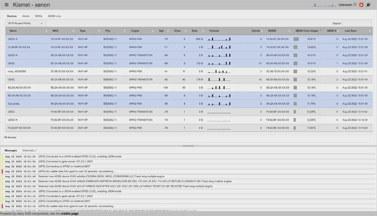 🔎 Kismet — это анализатор трафика, система обнаружения вторжений (WIDS) и инструмент для сбора данных о трафике Wi-Fi, Bluetooth, Zigbee