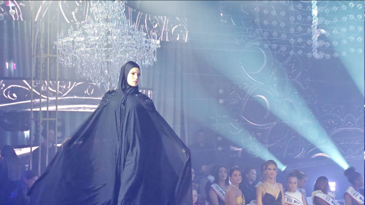 Помимо спортивной одежды у бренда есть Muslim collection. На показе девушки с покрытой головой были одеты в черные комбинезоны для фитнеса, поверх которых были надеты абаи с капюшонами, расшитые бисером в стиле бренда Rais. Были костюмы и для мужчин. Это все я и демонстрирую в данном тексте.