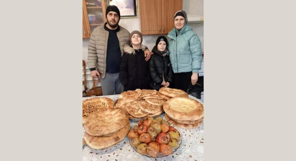 Как и положено в мусульманской семье, все здесь свято чтут Аллаха, знают молитвы, придерживаются поста. Сейчас вот идёт Рамадан, все в семье кушают два раза: в 18.10 и потом под утро. Днём даже воды не пьют. Готовят сытные национальные блюда, которые дают силы на весь день: пельмени, базламу, хачапури, самсу, супы — кайнатму, тутмач абур и другие.