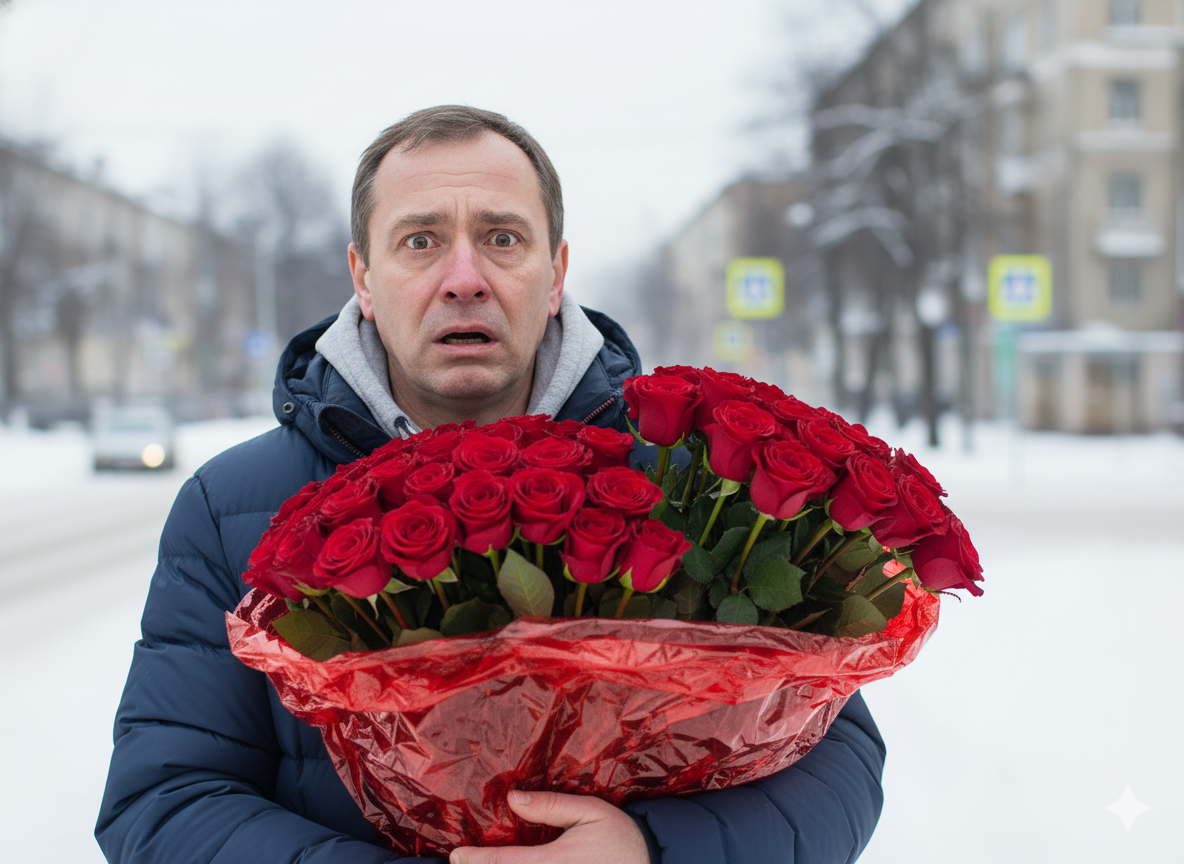 Одолжил у соседа по лестничной клетке пару тысяч до лучших времен. Пошёл в круглосучный цветочный ларёк на остановке. Выбрал самый большой и помпезный букет. Бордовые розы с длинными стеблями, куча белой гипсофилы, хрустящая блестящая плёнка с золотыми вензелями. Всё как она любит. Шик и размах.