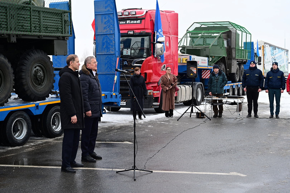 В прошлую пятницу в Уфе первый заместитель Председателя Правительства России Денис Мантуров, который находился в нашей республике с рабочим визитом, и Глава Башкортостана Радий Хабиров приняли участие в отправке колонны с гуманитарной помощью для мобилизованных и добровольцев Башкирии, участвующих в специальной военной операции. В составе груза – 17 автомобилей, в том числе два бронированных «Урала», 11 автомобилей УАЗ и четыре автомобиля ВАЗ, включая три «Нивы». Военнослужащим также направили мотоцикл «Урал», FPV-дроны, генераторы, бензопилы, пиломатериалы, маскировочные сети, антидроновые одеяла, стройматериалы и инструменты. Конвой доставит на передовую кровати, бытовую технику, одежду и тёплые вещи, автомобильные запчасти, окопные свечи, питьевую воду, медикаменты и медицинское оборудование, предметы первой необходимости и адресные посылки от родственников.