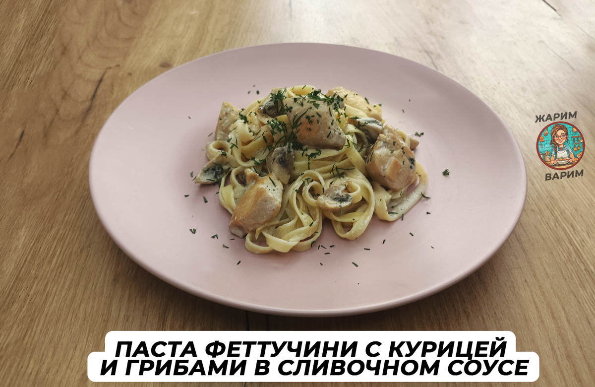 Порций: 3 Подготовьте все необходимые ингредиенты Доведите воду до кипения, добавьте соль и пасту феттучини. Варите пасту в кипящей воде 6-8 минут. Затем слейте воду через дуршлаг, а пасту сбрызните маслом и перемешайте Хорошо промойте куриное филе и нарежьте небольшими кусочками Разогрейте сковороду до горячего состояния и влейте в неё немного растительного масла. Кусочки куриного филе выложите на горячую сковороду. Обжаривайте в течение примерно 5-7 минут, чтобы мясо стало немного золотистого цвета Промойте грибы под проточной водой, нарежьте на четвертинки Затем добавьте в сковороду грибы. Обжарьте все вместе 2-3 минуты. Затем накройте крышкой, сделайте меньше огонь и оставьте все готовиться еще минут 10. Периодически помешивайте. Если вся влага от грибов выпарится очень быстро, то добавьте немного воды Когда курица с грибами приготовится, влейте в сковороду сливки. По вкусу добавьте немного соли и специи. Все перемешайте и доведите до кипения. При нагревании соус немного загустеет