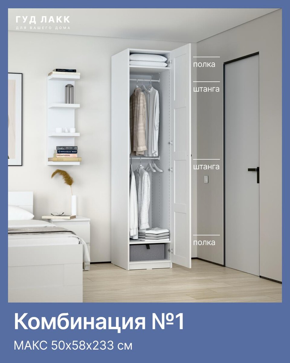 👍👍👍👍👍 Узкие и компактные шкафы МАКС 50х58 см — идеальное решение для любых метров. Пеналы занимают минимум площади, при этом благодаря высоте вмещают много вещей, обеспечивая удобное вертикальное хранение. 5 разных комбинаций для вашего вдохновения. Смотрите и планируйте МАКС для своей комнаты, ванны, коридора или кухни. ❤️ — полезно 🗑 Гудлакк.рф 😎 OZON ☺️ Яндекс Маркет ➡️ ГУД ЛАКК в MAX
