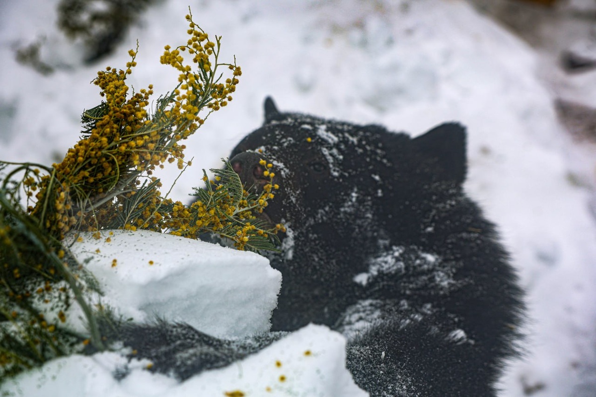 Айсор и Кира уже вышли на улицу и с первого дня начали активно гулять: прыгают по снегу, ищут любимые игрушки и осваивают вольер. После обеда даже «навели порядок» — протоптали дорожки на территории. Старший медведь Гай тоже проснулся, но пока осторожничает: выходит ненадолго и внимательно осматривается. Теперь у косолапых особая диета — в их рацион входят морковь, яблоки, груши, огурцы, а также творог и рыба. 📷: Екатеринбургский зоопарк