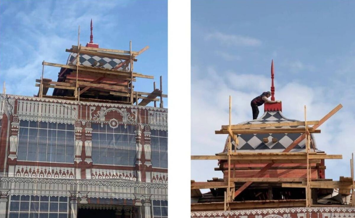 В Рязани продолжается восстановление Летнего клуба Дворянского собрания. Подробности рассказала зампред регионального правительства Наталья Суворова в ходе прямой линии. Реставрационные работы включают несколько этапов. Сначала укрепят фундамент, завершить работы планируют в первом квартале 2026 года. А также отремонтируют кровлю. Сейчас завершили монтаж купола со шпилем на крыше здания, в конструкцию возвращен ранее скрытый декоративный элемент в форме валика. теперь он выглядит выше. Работы продолжаются, кровлю покрывают металлическими листами, устанавливают деревянные декоративные элементы, ремонт цоколя и карниза. Здание бывшего Летнего клуба Дворянского собрания является памятником деревянного зодчества начала XX века, внесено в единый государственный реестр объектов культурного наследия народов РФ. Строение находится в Нижнем городском саду. Здание является одной из ключевых точек Большого пешеходного маршрута. Ранее здесь располагался Центр народного творчества. Временно занятия