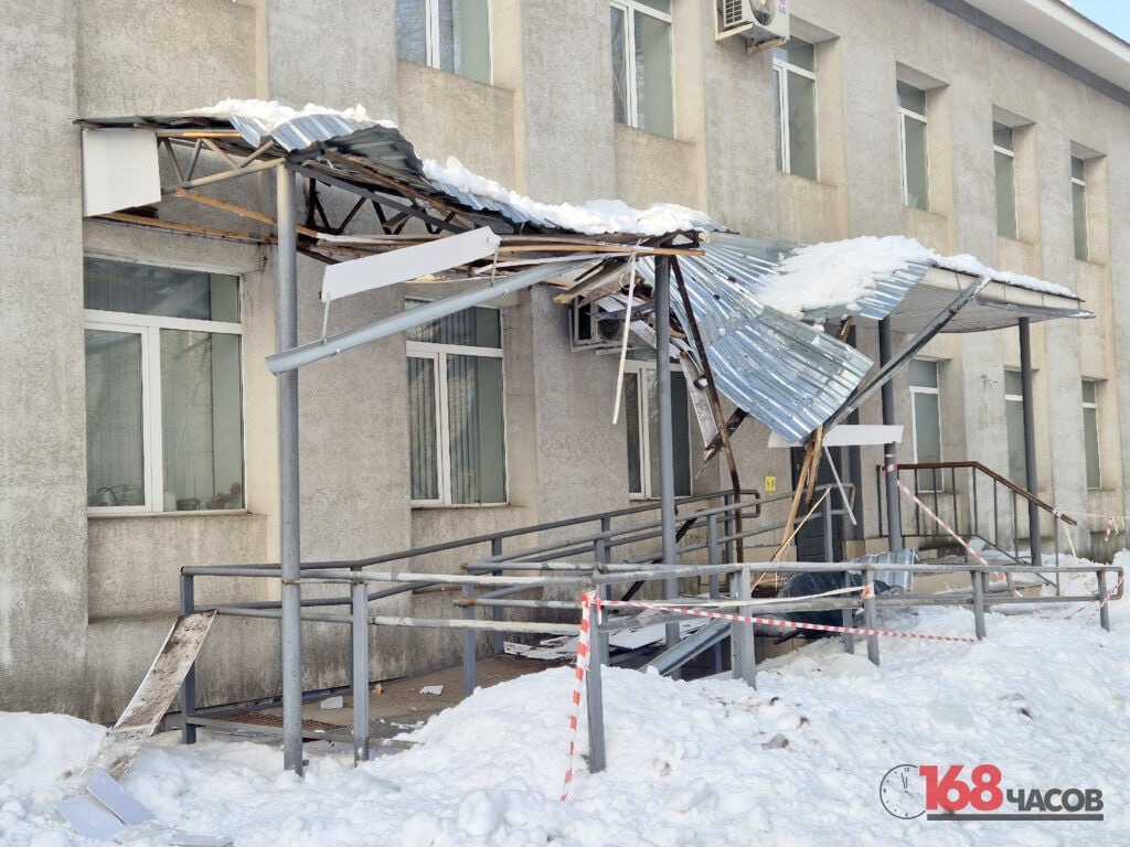 Наледь разрушила козырёк на входе в кинешемскую прокуратуру.