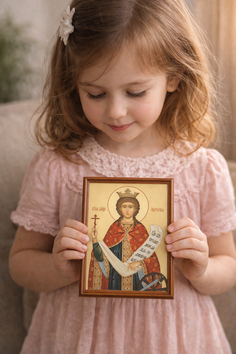 Вечером, ложась спать, Катя долго смотрела на иконку. Золотой нимб святой Екатерины мягко поблёскивал в свете ночника.