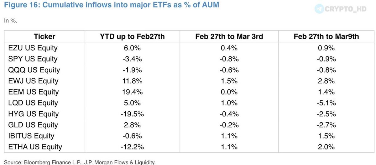 ? JPMorgan: C начала войны на Ближнем Востоке – в крупнейшем спотовом ETF на Золото (#GLD) зафиксирован отток капитала в размере около 2,7%, в то время как в крупнейшем спотовом ETF на Биткоин (#IBIT) наблюдается приток в размере 1,5%. Crypto Headlines