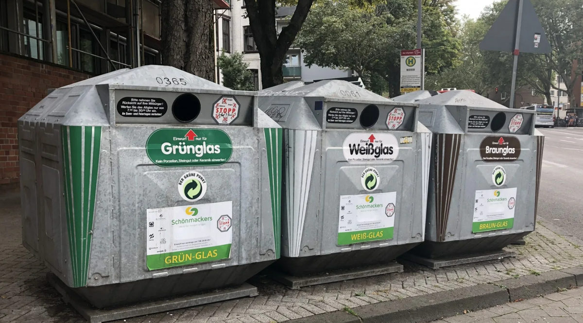 Это мой личный топ абсурда. Немцы - фанаты экологии и переработки. Они сортируют мусор по пяти-шести разным бакам: стекло (по цветам!), бумага, био, пластик, остальное. Но мало просто выкинуть баночку из-под йогурта в желтый пакет. Её нужно помыть.