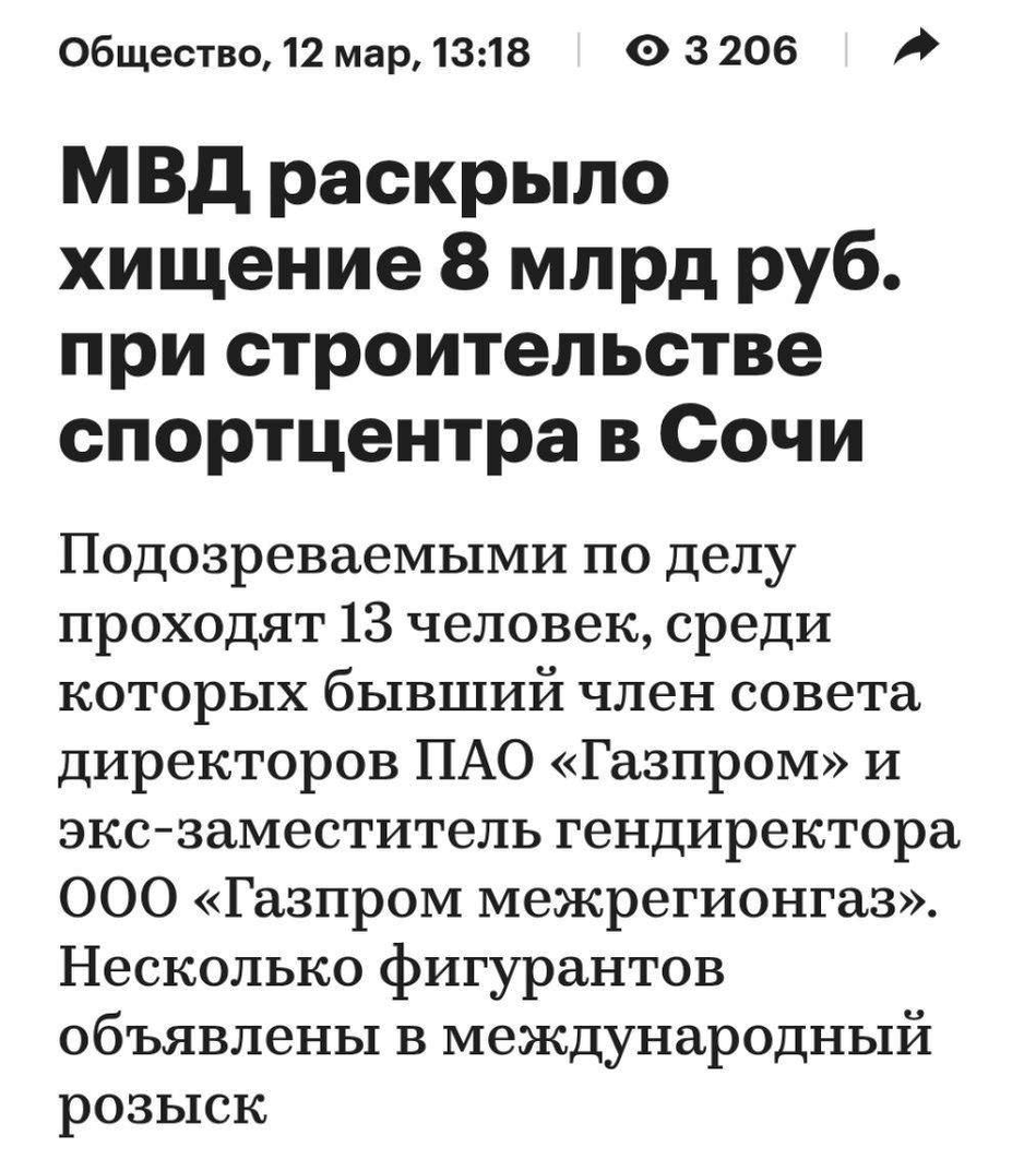 Эта история — не просто коррупционный триллер, а зеркало проблем с мегапроектами в России. Олимпийское наследие Сочи, где в 2014 году блистали спортсмены, должно было вдохновлять на новые свершения. Вместо этого оно стало полем для «эффективного освоения» бюджетов. Следственный комитет РФ (СК) передал дело в суд, обвинив 13 человек в мошенничестве на особо крупную сумму и легализации преступных доходов. Среди подозреваемых — бывшие члены советов директоров и заместители гендиректоров дочерних структур «Газпрома». Пока одни ждут приговора, другие предпочли эмигрировать, объявившись в международном розыске.