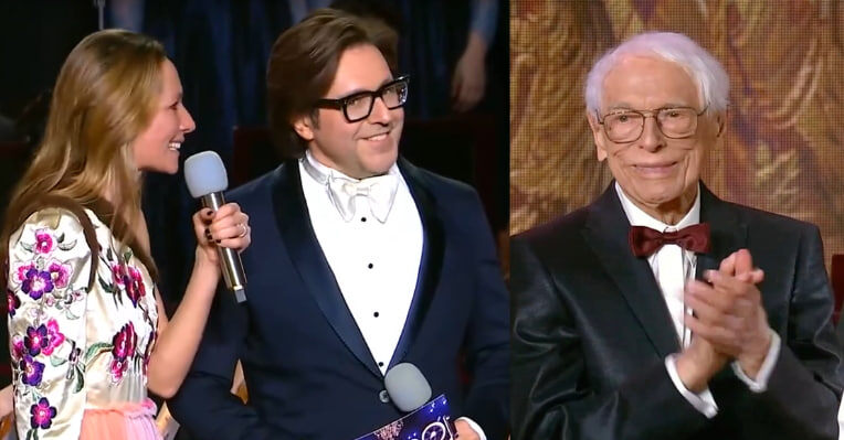 Но самую большую ошибку организаторы оставили на финал концерта. На сцену выкатили два рояля. За один посадили 100-летнего Александра Зацепина и 96-летнюю Александру Пахмутову. За другой рояль сел молодой пианист.