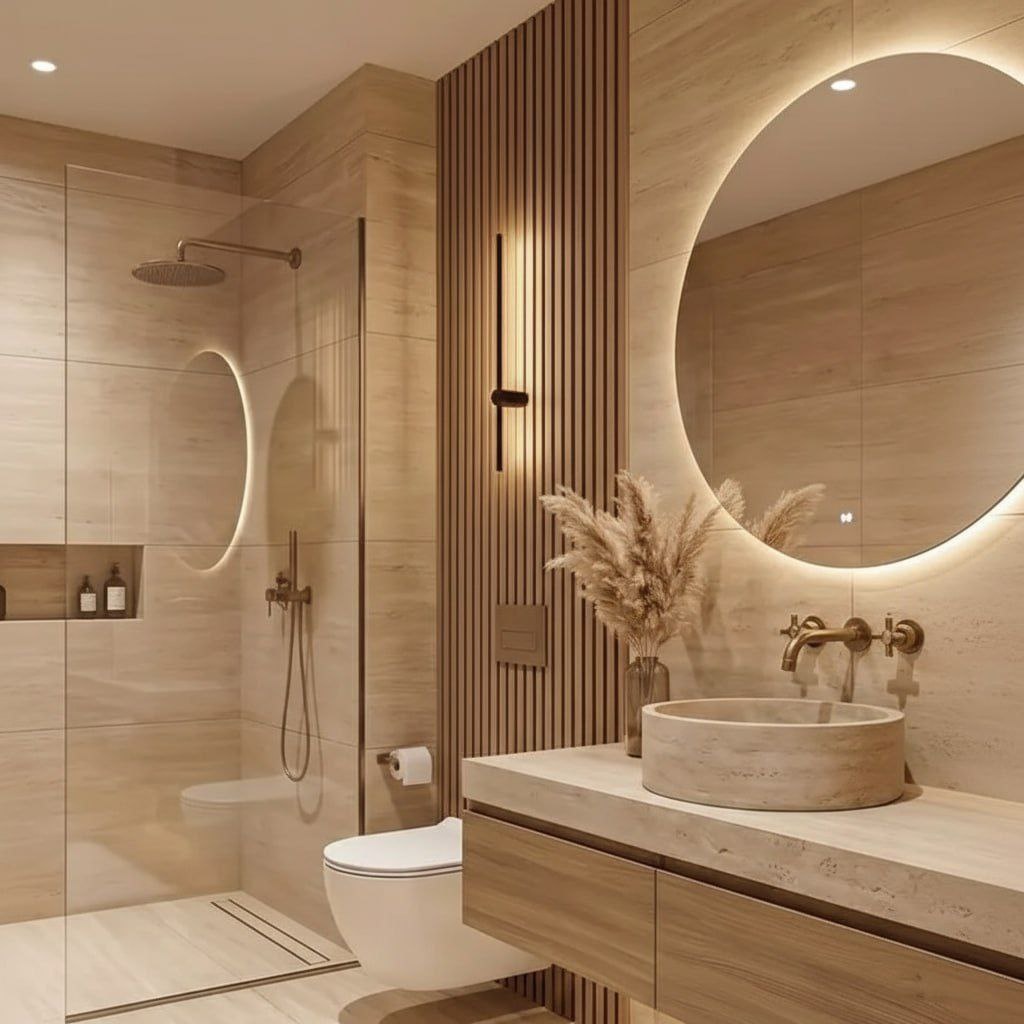 ? Травертин в ванной - один из самых простых и при этом эффектных способов придать санузлу ощущение премиального интерьера. Этот камень веками использовался в архитектуре - от античных терм до современных отелей высокого уровня. Его ценят за природную текстуру и мягкие теплые оттенки, которые создают ощущение уюта и естественной роскоши. В интерьере санузла травертин работает как базовый материал: он не перегружает пространство, но формирует дорогой визуальный фон. Светлые прожилки и характерная фактура делают поверхность «живой», благодаря чему стены и пол выглядят глубже и интереснее, чем обычная однотонная плитка. Еще одно важное преимущество - универсальность. Травертин одинаково гармонично сочетается с деревом, черной сантехникой, стеклом и теплым освещением. В коллекциях MG Ceramic представлены разные оттенки травертина: кремовый, коричневый, серый, с матовой и полированной поверхностью. #керамогранит #травертин #дизайн_ванной #ремонт #mgceramic