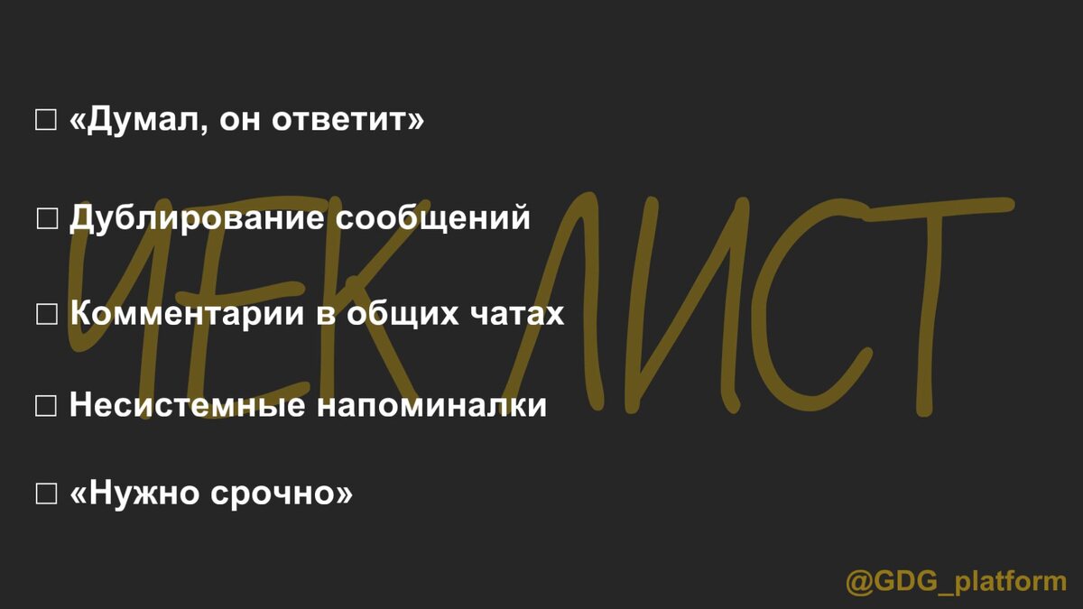 Вот быстрый чек-лист, который поможет команде определить, нужен ли им GDG. Все эти привычки создают хаос, а их устранение — первый шаг к системной работе. Репостьте коллегам, чтобы все перестали терять время и нервы! 👉 Попробовать бесплатно: @Telega_CRM_bot
