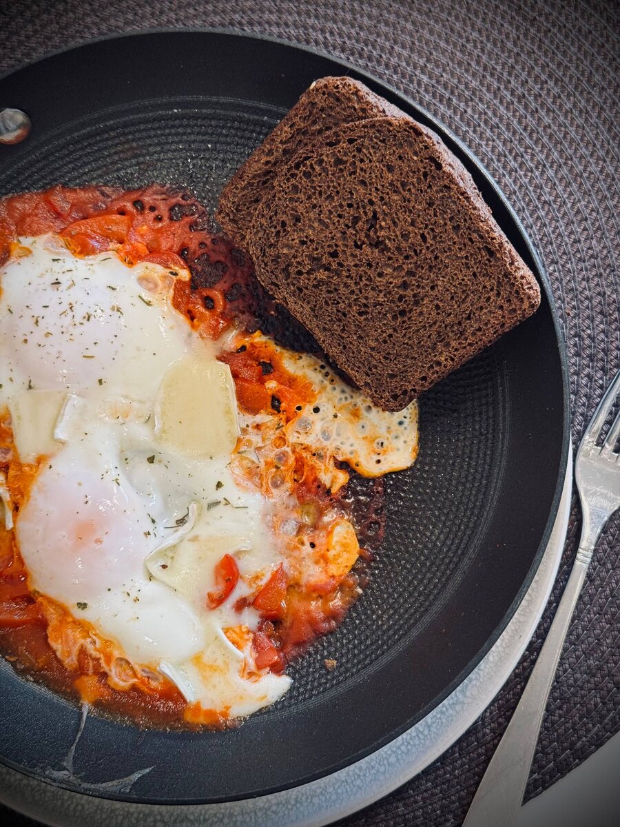 🥴 И это моя «поддерживающая» шакшука. Сначала дочь начала кашлять, а сын поплыл соплями. На следующий день я начала ощущать, что заболеваю. А следом и муж подтянулся. Но мы обычно долго не болеем, поэтому, думаю, пару дней и будем огурцами. Сын-то уже скачет- в школу ходит, на тренировки. Я вчера (с дуру) на плавание все же пошла, сегодня с соплями. Муж бедный на работе торчит. Межсезонье чаще всего бьет по здоровью. Берегите себя ❤️