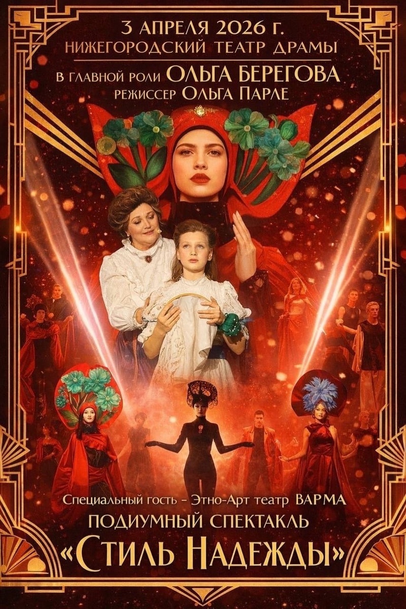 ». Это старт череды гастрольных поездок спектакля, приуроченных к 165-летию Надежды Петровны Ламановой! 📜 На сцене оживёт биография великого русского модельера Надежды Ламановой — женщины, которая прошла путь от придворной модистки до реформатора советской моды. Это история не только о стиле, но и о характере, выборе, миссии. «Стиль Надежды» это: ⭐️ Уникальный сценический синтез драматургии, дефиле, музыки, этновокала и хореографии. ⭐️Погружение в судьбу одной из первых отечественных женщин-модельеров мирового уровня. ⭐️Дизайнерские коллекции со всей России: от модерна до современного авангарда. 😄 Мероприятия Нижний Новгород. Я местный! 📱 Telegram | 📲 MAX