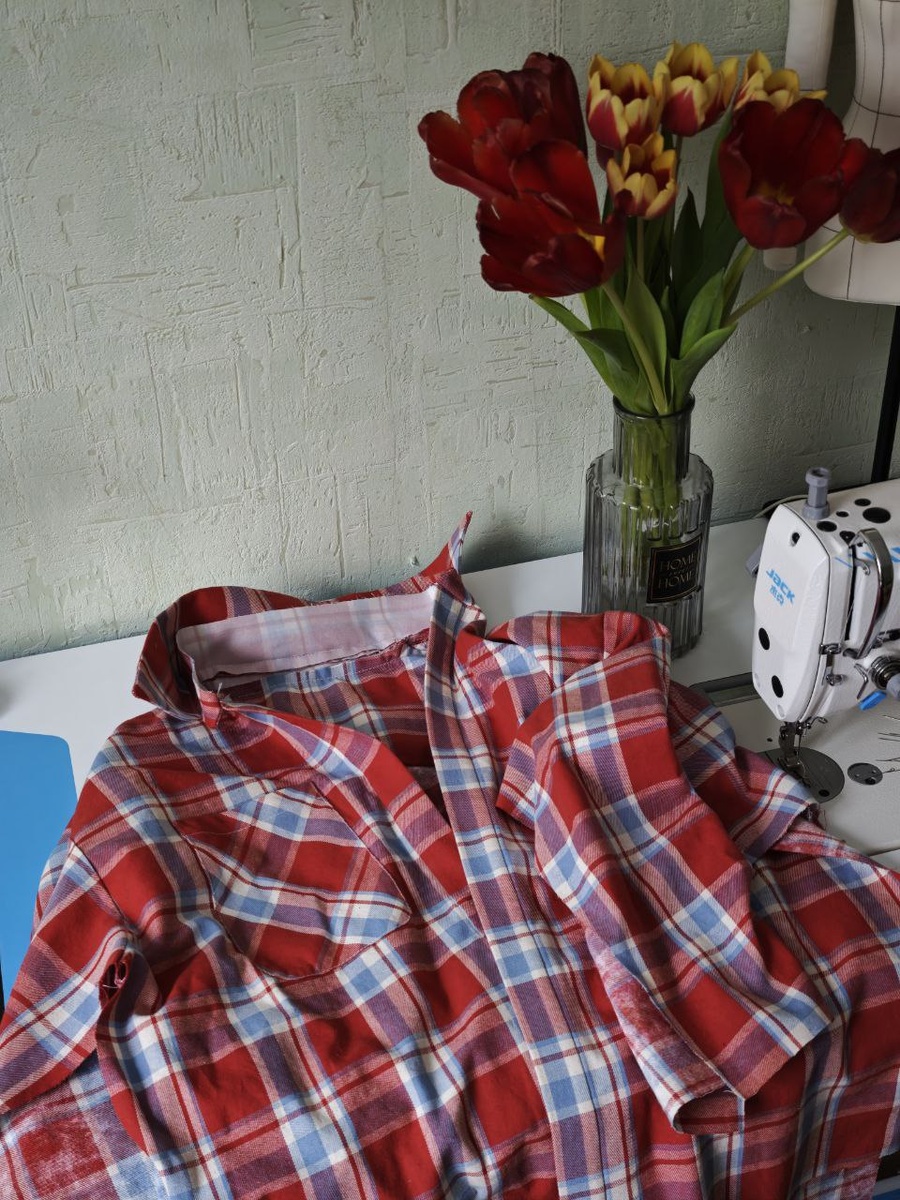 ! Из изменении: • в объёме немного уменьшила т к ткани у меня было около 1.6-1.7м (заказывала давно просто понравилась клетка😅) •кокетку, манжеты и карман кроила по косой •срезы на рукавах обработала косой бейкой •длину рубашки уменьшила , опять же из-за нехватки ткани) от планки •отказалась от планки на рукаве и воланы не делала Планку пришлось переделывать иначе не нравилась как смотрится, она не цельнокроенная, в ширину не вмешались полочка и спинка. Сначала я хотела шить стороной варенки на лицевую, но после примерки решила наоборот, мне так больше нравится, плюс для стилизации больше вариантов. С клеткой работала впервые, да и были сложности со стыковкой, у меня нет никаких лапок специальных для промок типо шагайки. Траспортер снизу постоянно смешал ткань. Но я привыкла и не спеша проходила участки. Собрала для себя лайфхаки, чуть позже поделюсь ими 💛