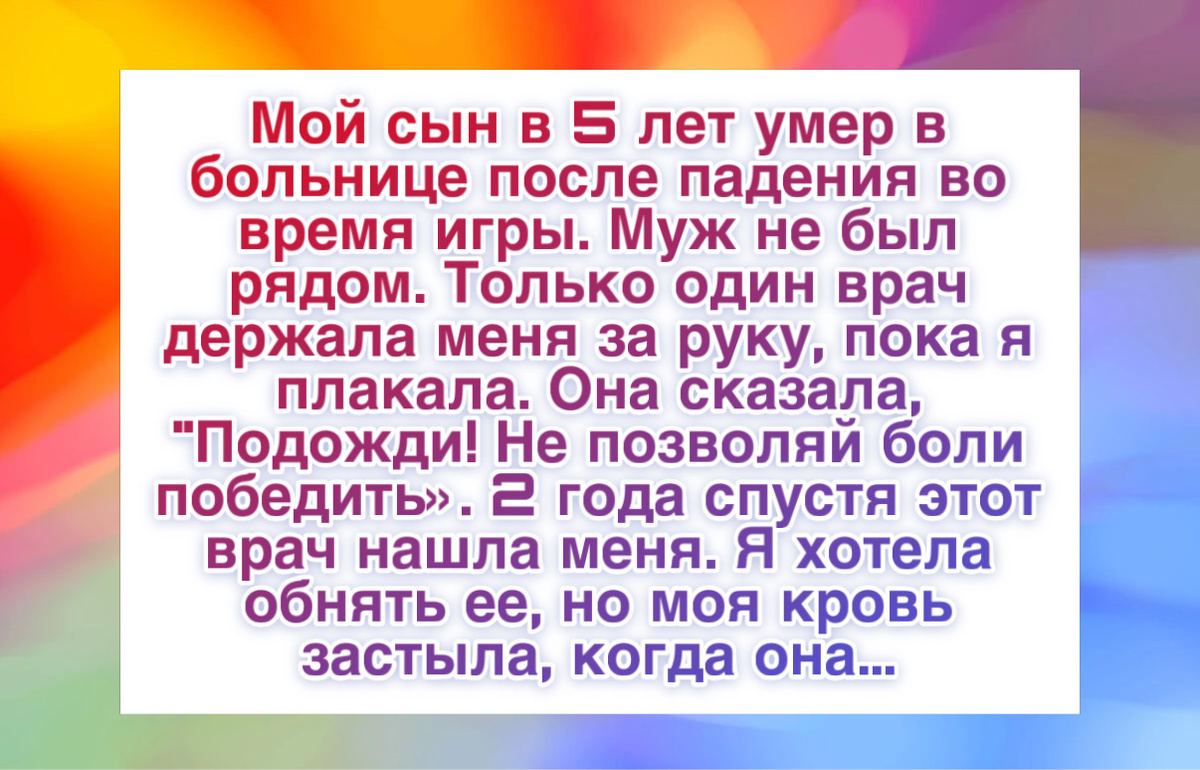 “Мой пятилетний сын умер в больнице после падения на детской площадке. Муж много работал и не был рядом. В тот момент только один врач держал меня за руку, пока я плакала. Она сказала: «Держитесь. Не дайте боли победить».