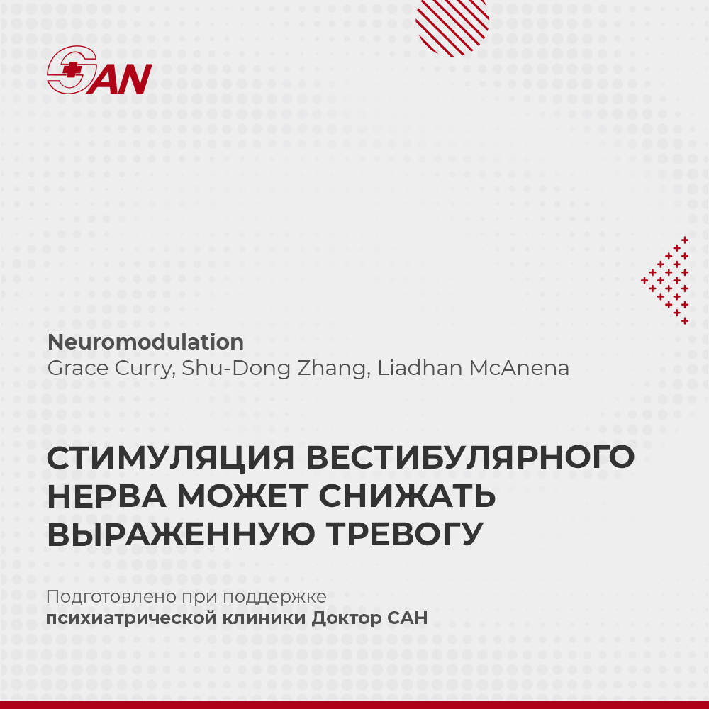 В журнале Neuromodulation опубликовано рандомизированное двойное слепое плацебо-контролируемое испытание Modius Anxiety Study, в котором оценивали повторную электрическую стимуляцию вестибулярного нерва (VeNS) как потенциальный неинвазивный метод терапии тревоги. В исследование включили 87 участников с клинически значимой тревогой (GAD-7 ≥10). Их в соотношении 1:1 распределяли на активную VeNS или имитированную стимуляцию; процедуры проводились дома ежедневно по 30 минут в течение 28 дней. Различия между группами по изменению GAD-7 от исходного уровня до 28-го дня не достигли статистической значимости (p=0,269). Однако в подгруппе с умеренно-тяжёлой тревогой (GAD-7 ≥10) активная VeNS обеспечила более выраженное улучшение по GAD-7 по сравнению с имитированной стимуляцией (p=0,045). При этом значимых различий между группами по уменьшению бессонницы и компонентам SF-36 в подгруппе GAD-7 ≥10 не выявлено. Источник: https://pubmed.ncbi.nlm.nih.gov/41642155/