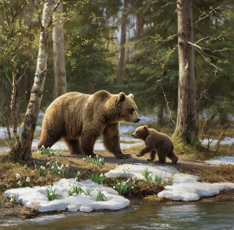 И они пошли по влажной, пахнущей жизнью земле — большой медведица и маленький медвежонок, который больше не боялся Большого Сна, потому что знал: после него всегда наступает ещё более прекрасное пробуждение. А впереди у них был целый год новых открытий.
