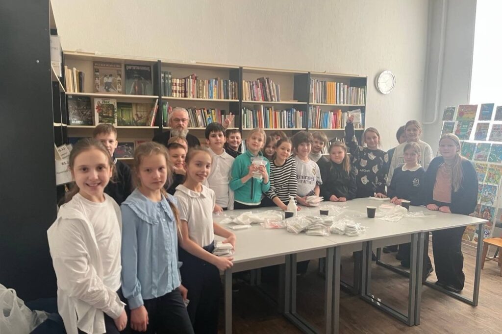 12 марта 2026 года в Центральной детской библиотеке г. Мытищи настоятель Иверского храма п. Птицефабрика иерей Михаил Соболев встретился с учащимися 4-го класса школы № 6 г. Мытищи. Священник рассказал школьникам о том, как приход помогает бойцам в зоне специальной военной операции, в частности, изготавливая сухой армейский душ. Затем пастырь провёл для ребят мастер-класс. Школьники с интересом включились в процесс: они не только научились делать сухие души, но и изготовили около 90 пакетов для отправки воинам. В ближайшее время эти комплекты будут переданы с гуманитарной помощью в зону СВО.