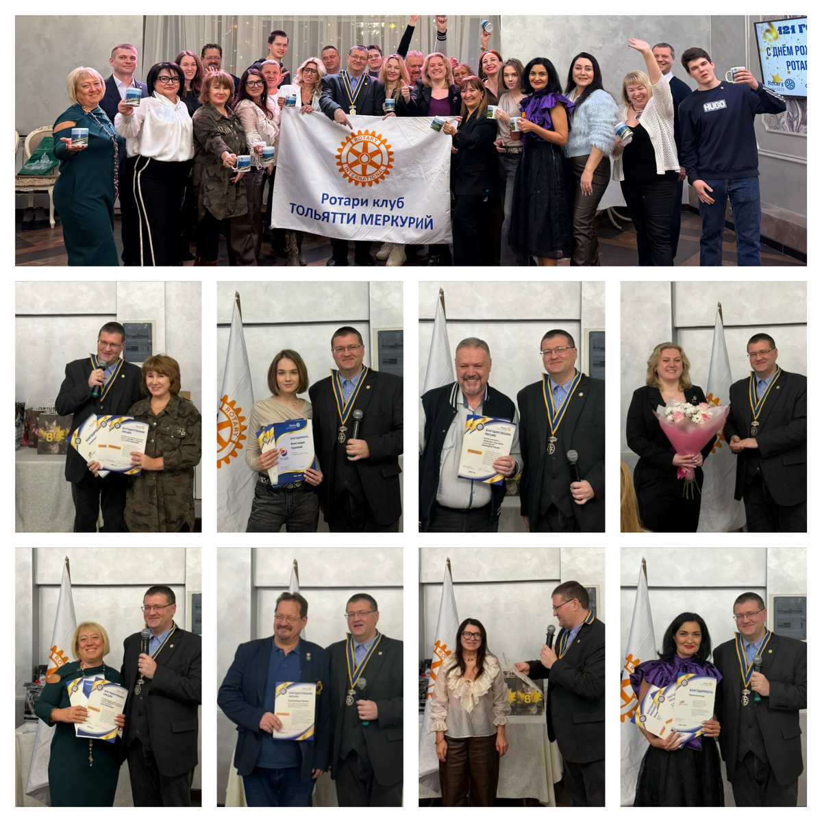 В этом году международному движению Ротари исполнилось 121 год 🎉 🤝 Праздник единомышленников Вечер прошёл в тёплой дружеской атмосфере. Были зажигательные конкурсы, много общения и искреннего смеха — тот самый момент, серьёзные люди на время откладывают деловые повестки и просто радуются компании друг друга. Также на праздничном заседании присутствовали члены Ротаракт клуба Тольятти Меркурий. 🎁Поздравления и внимание Члены клуба поздравили друг друга с Днём защитника Отечества и с 8 Марта — с тёплыми словами, подарками и весенним настроением. ⭐️ Новые члены клубов На праздничном мероприятии в Ротари клуб Тольятти Меркурий была принята Екатерина Зотова. В члены Ротаракт клуба Тольятти Меркурий принят Николай Попов. 🙏Благодарность за вклад А также друзья и члены клуба получили благодарственные письма за помощь и вклад в проекты Ротари клуба Тольятти Меркурий. Ротари клуб Тольятти Меркурий г. Тольятти https://rotary-mercury.ru/
