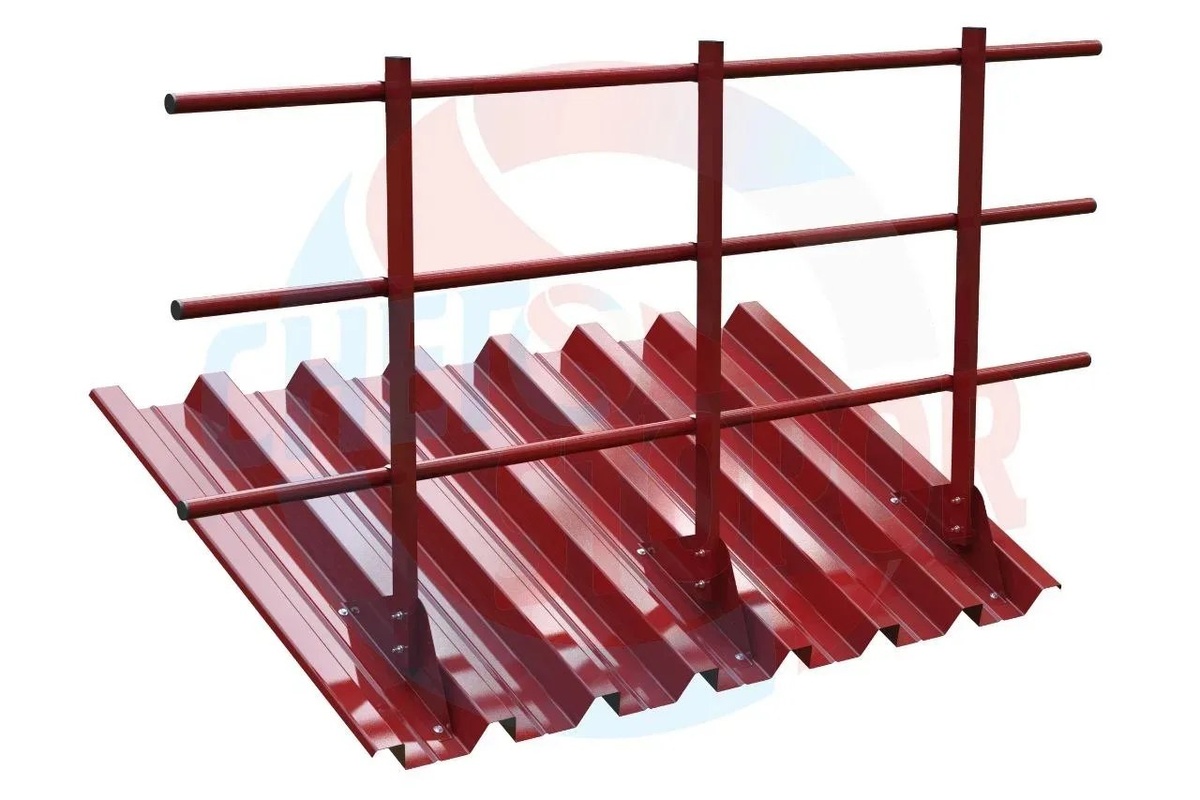 и ограждающими элементами 3 шт.) h=900мм, L=3000мм. Состав комплекта: 1. Стойка ограждения h=900мм (труба 20х30) - 3 шт. 2. Опорный кронштейн стойки ограждения t=1,5мм - 3 шт. 3. Ограждающий элемент (труба 25; дл. 3000мм) - 3 шт. 4. Резиновая прокладка под кронштейн - 3 шт. 5. Хомут «С»-образный - 9 шт. 6. Шуруп оцинкованный 6х50 в комплекте с шайбой - 6 шт. 7. Болт оцинкованный 6х35 в комплекте с шайбой и гайкой - 6 шт. 8. Саморез с пресс-шайбой - 18 шт. (крепление ограждающих элементов к стойке). ООО "ТД"РУФЛАЙН" - забота о Вашей безопасности! Tel - Telegram - Max +7(343)207-65-68 +7(922)021-97-56 pm3@uralroof.ru http://руфлайн66.рф https://max.ru/id6685089174_biz https://max.ru/id6685089174_bot https://t.me/td_roofline https://t.me/tdroofline https://t.me/roofsalebot/app