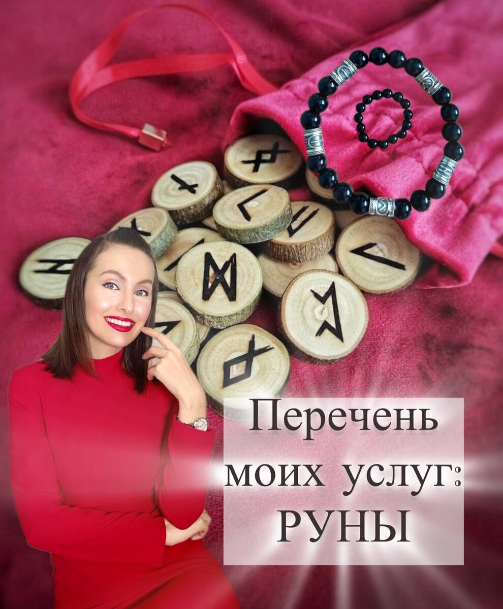 📿 1. Рунодиагностика (Анализ ситуации и причин) Диагностика личности: Анализ текущего состояния человека (энергетика, настроение, скрытые ресурсы). Какая руна ему покровительствует в данный момент? Диагностика проблемной ситуации: Расклад на причины. Энергетическая диагностика (ауры): Определение целостности энергетического поля. Есть ли пробои, воронки, присосы (энергетические вампиры)? Диагностика на негативные воздействия: Порча, сглаз, проклятие, приворот, родовое негативное влияние. (Руны здесь — один из самых точных инструментов). 2. Рунические Ставы и скрипты - создание и активация рунических формул (ставов) для привлечения ЛЮБОГО желаемого. Например: 2.1. Сфера любви и отношений Привлечение партнера: Создание става «Встреча с суженым» или «Магнит для любви». Гармонизация существующих отношений: Снятие ссор, недопонимания. Обновление чувств и страсти: Если партнер охладел. 2.2. Деньги, удача и карьера «Денежный поток»: Открытие каналов дохода, создание става на постоянный пр