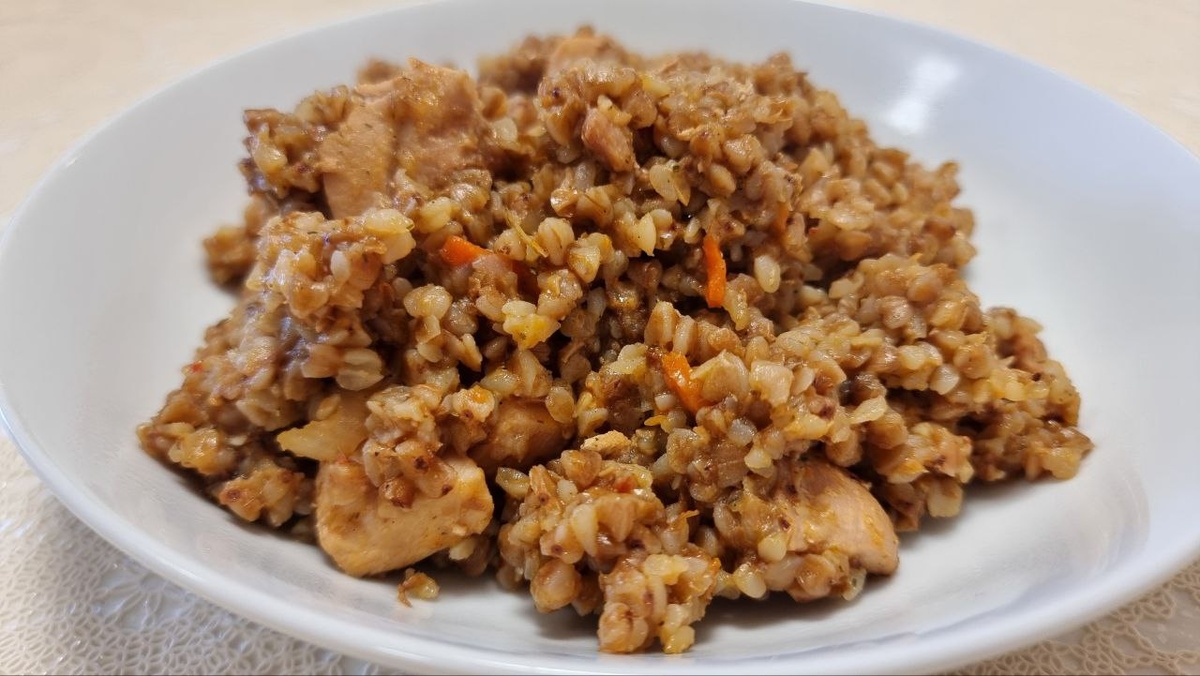 😃 Приятного всем аппетита😊 Правда на упаковке стояло, что нужно три стакана воды на стакан гречки🤔 Мне показалось это много и я добавила 2 стакана на стакан гречки и получилось прекрасно👍🏻 Если кто надумает попробовать, берите пропорцию 1 к 2👍🏻 Иначе думаю получится каша жидкая))) Хотя у меня ядрица, она вроде развиравается быстрее чем обычная гречка, или?