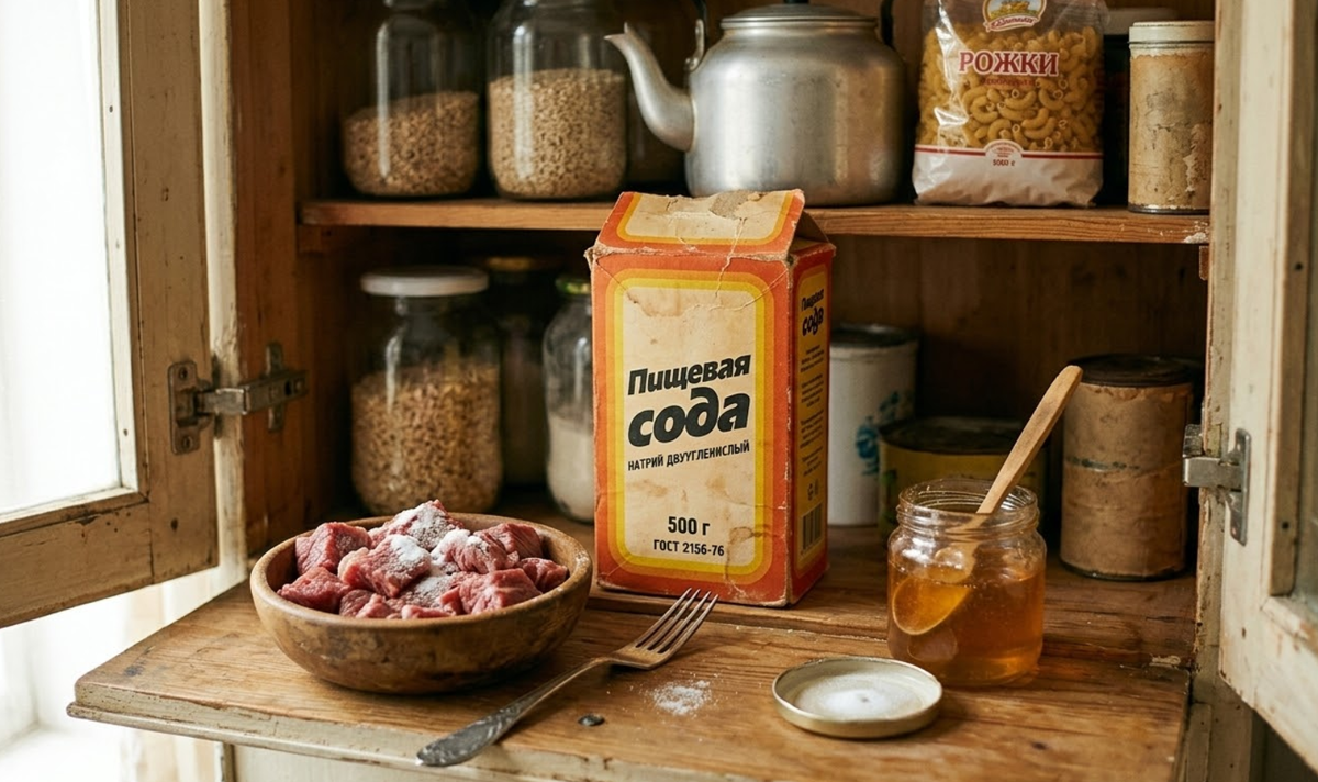 Помните этот ни с чем не сравнимый вид: открываешь кухонный шкафчик, а там она — вечная оранжево-желтая картонная пачка? Она стояла там у наших мам, у бабушек, и, кажется, переживет нас всех. А ведь мы и не задумывались, что в этой привычной коробочке спрятано настоящее сокровище. Мы привыкли доверять нарядным флаконам, которые пахнут ядреным «лимоном» и часто стоят неоправданно дорого. Оказывается, в обилии современной рекламы мы просто начали забывать о простых и действенных средствах. Нас приучили, что для каждой поверхности нужен свой флакон: один для кафеля, другой для накипи, третий для блеска... А ведь раньше одна щепотка решала почти все бытовые задачи. Я тут на днях достала старую мамину тетрадку с рецептами — ту самую, с приклеенными вырезками из газет. И знаете, что я там нашла между рецептом «Наполеона» и советами по засолке огурцов? Целую подборку хитростей с обычной содой! Вот вы знали, что даже самое «капризное» мясо можно сделать невероятно мягким? Наши бабушки знали эт