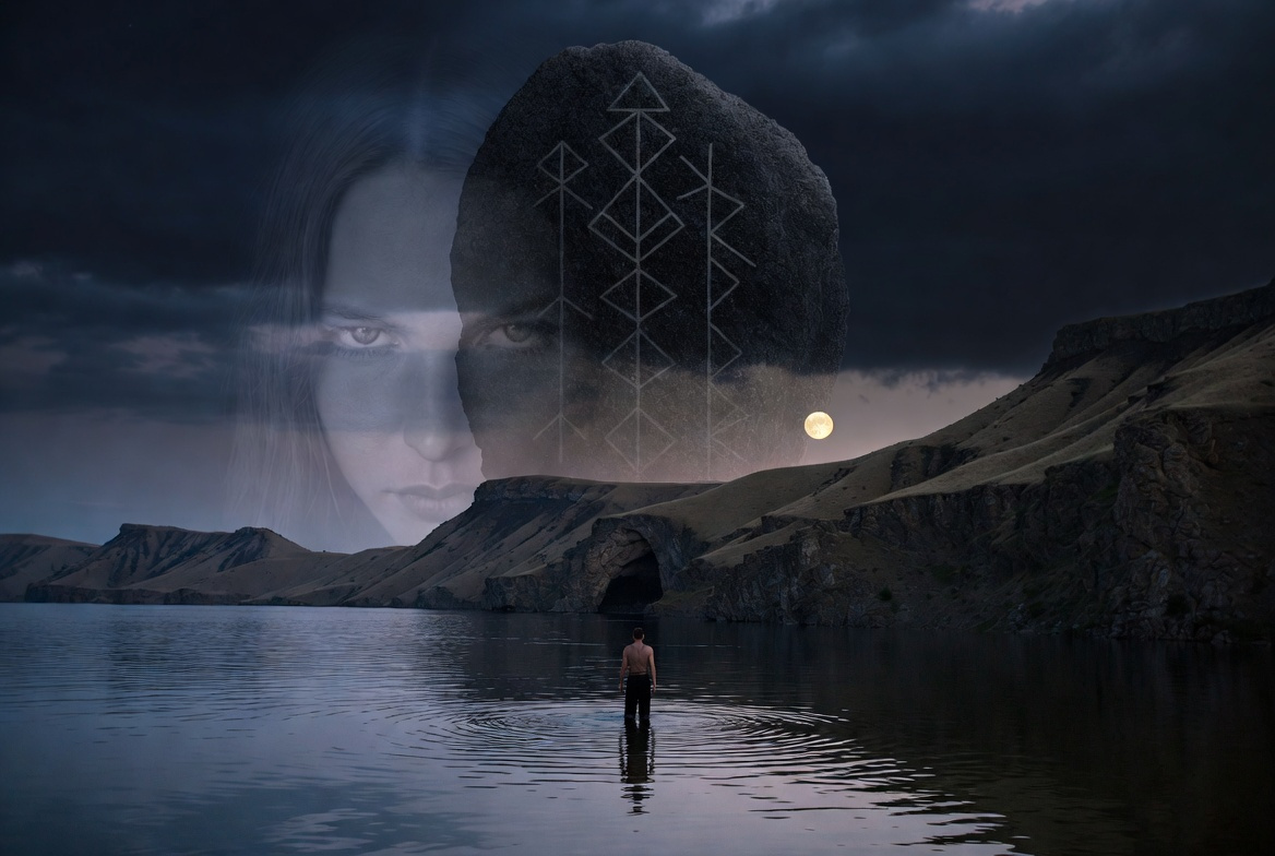 И тогда камень засветился. Ярко, зелёным. Пещера наполнилась туманом. Из тумана вышла фигура. Женская. Высокая. Волосы — как водоросли. Лицо — красивое, но старое, очень старое.