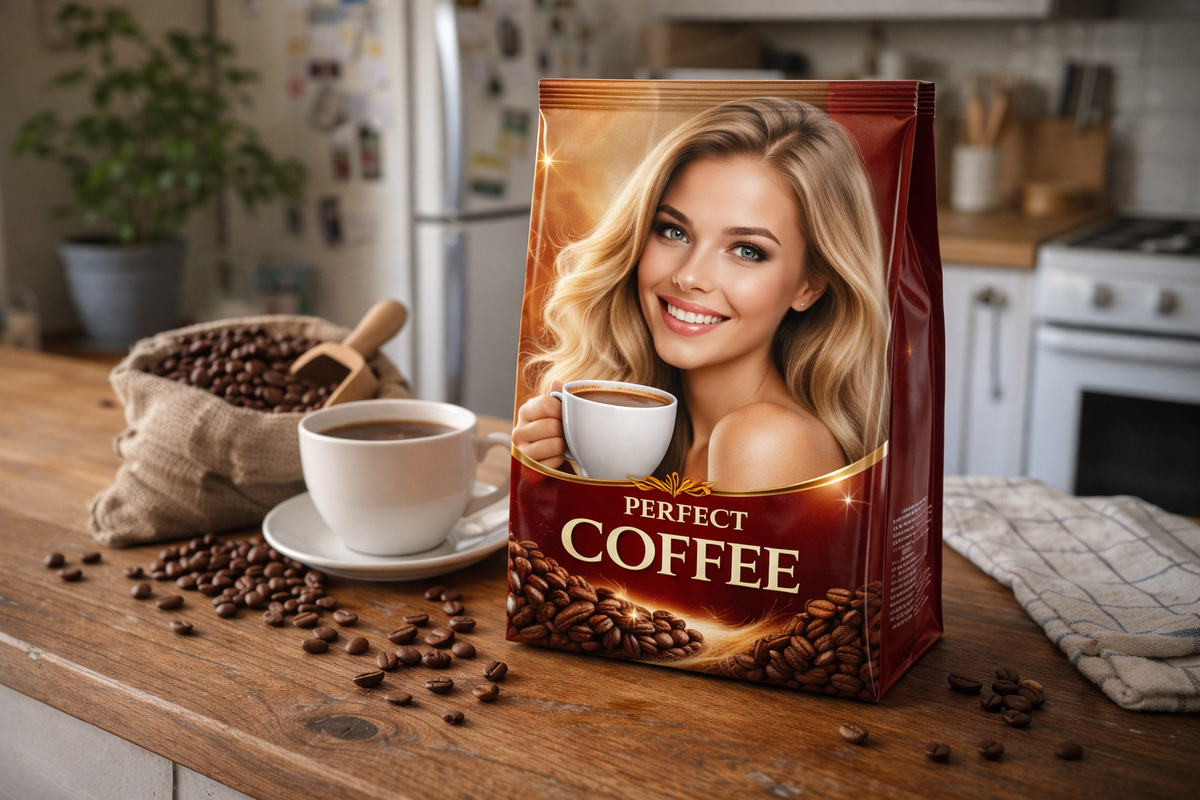 P.S. Кстати, девушку с пачки кофе мы придумали специально для примера. А настоящая реклама настоящего кофе ждёт своего часа. И в ней будет всё по-честному.