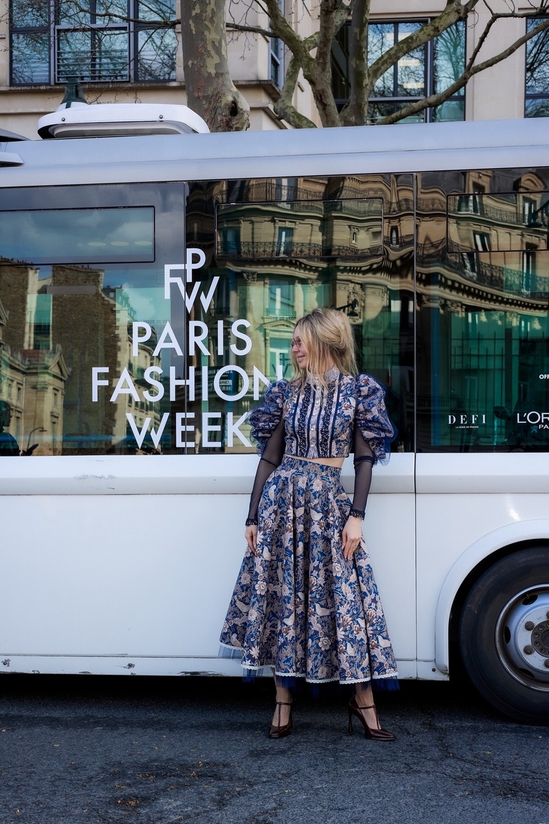 11 марта «Шуйские ситцы» вышли на парижский подиум. Дизайнер Яна Пономарева специально для недели моды в Париже создала эскиз наряда из легендарных тканей шуйской фабрики. Представила бренд во Франции создательница проекта «Царевна Мира» и автор шоу «Ход Царевны» Елена Баранова. Называется модель «Берегиня». Это микс из народных мотивов и современной эстетики. На Елене - короткий приталенный лиф с выразительными пышными рукавами, напоминающий силуэт дворянки, и широкая юбка-солнце, плавно расходящаяся от талии, формируя динамичный и одновременно нежный образ. Фото: Домашний текстиль Иваново | Шуйские ситцы / ВКонтакте