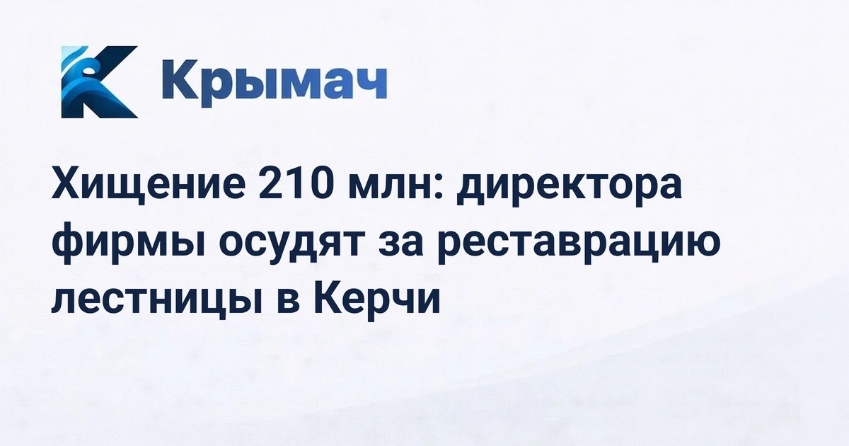 Уголовное дело о хищении более 210 миллионов рублей, выделенных на реставрацию знаменитой Митридатской лестницы в Керчи, передано в суд. Прокуратура Республики Крым утвердила обвинительное заключение в отношении генерального директора подрядной организации АО «Баварский дом», который обвиняется в мошенничестве в особо крупном размере. По версии следствия, руководитель подрядной фирмы использовал некачественные строительные материалы и подделывал отчетные документы. https://krymach.ru/news/kerch/hischenie-210-mln-direktora-firmy-osudyat-za-restavraciyu-lestnicy-v-kerchi