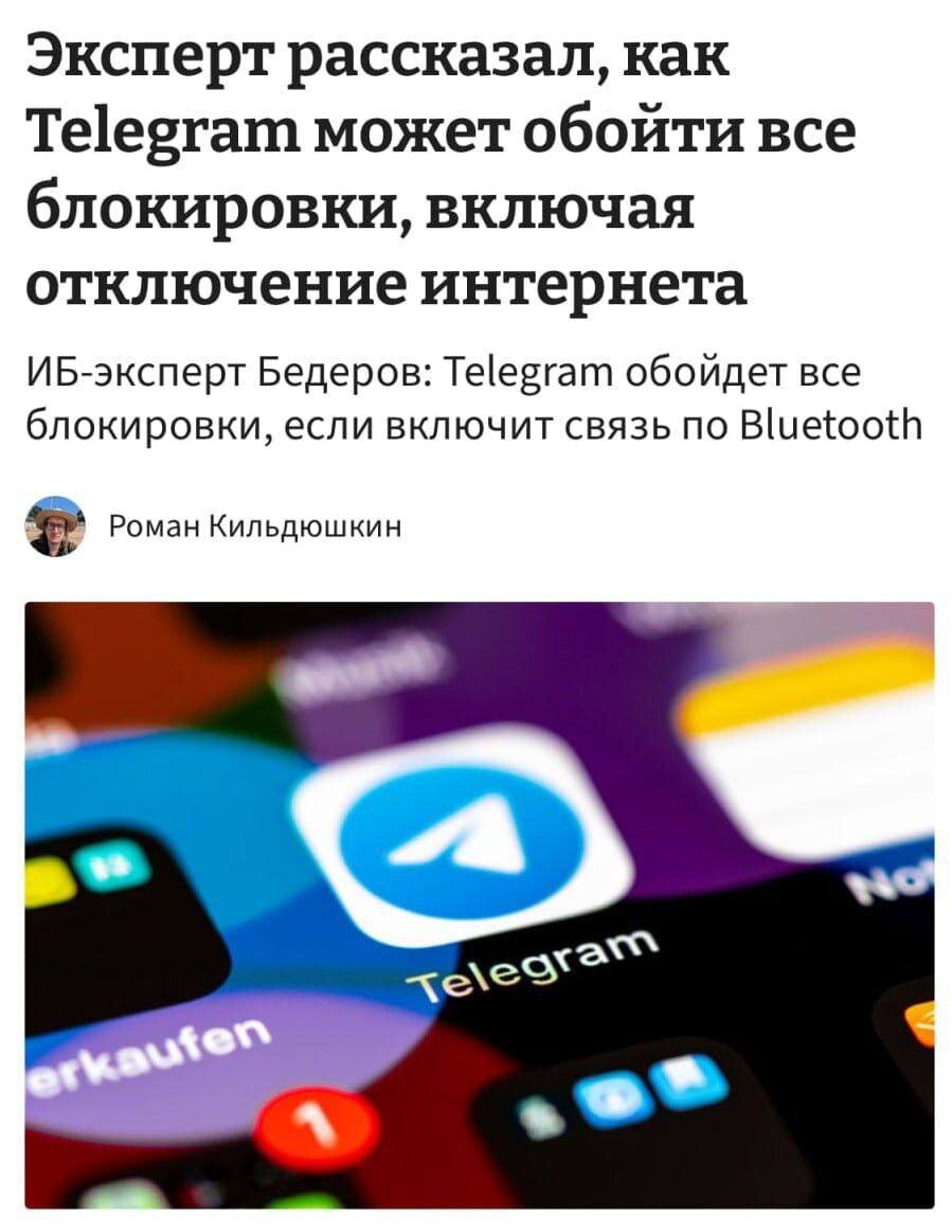 По их мнению, ключевую роль может сыграть одна функция — поддержка Mesh-сетей. В этом режиме пользователи смогут обмениваться сообщениями через Bluetooth и Wi-Fi, напрямую между устройствами, без участия провайдеров и серверов. Единственный способ остановить такую сеть — это глушить радиосигналы Bluetooth и Wi-Fi. NeuroFlux #Telegram #MeshСети #интернет #блокировки #эксперты #технологии #связь #Bluetooth #WiFi #коммуникации
