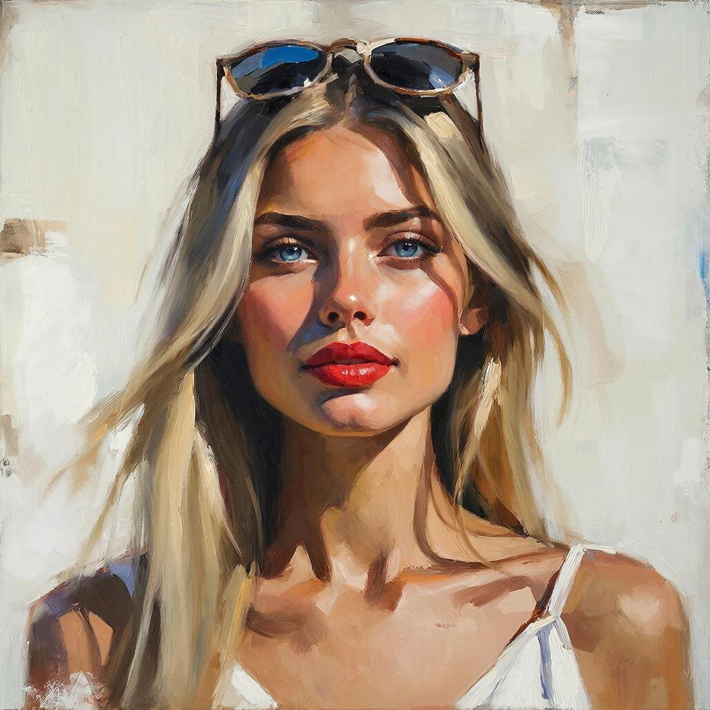 Её длинные, идеально выпрямленные волосы цвета спелой пшеницы мягко струились по плечам, создавая контраст с ярко-алой, словно пламя, губной помадой. На столе перед ней лежала перьевая авторучка, которую она рассеянно вертела в пальцах, словно пытаясь найти в ней ответы на все вопросы мира.