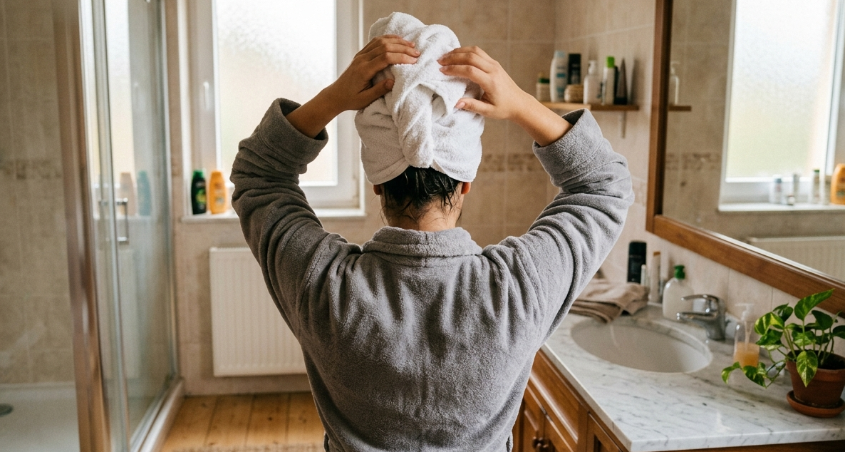После душа мы автоматически накручиваем волосы в тюрбан и ходим так по делам 20, 30, а то и 40 минут. Кажется, что ничего страшного - вода стекает, волосы сохнут, руки свободны. Но врачи предупреждают: эта безобидная привычка может стоить вам здоровья кожи головы и качества волос.