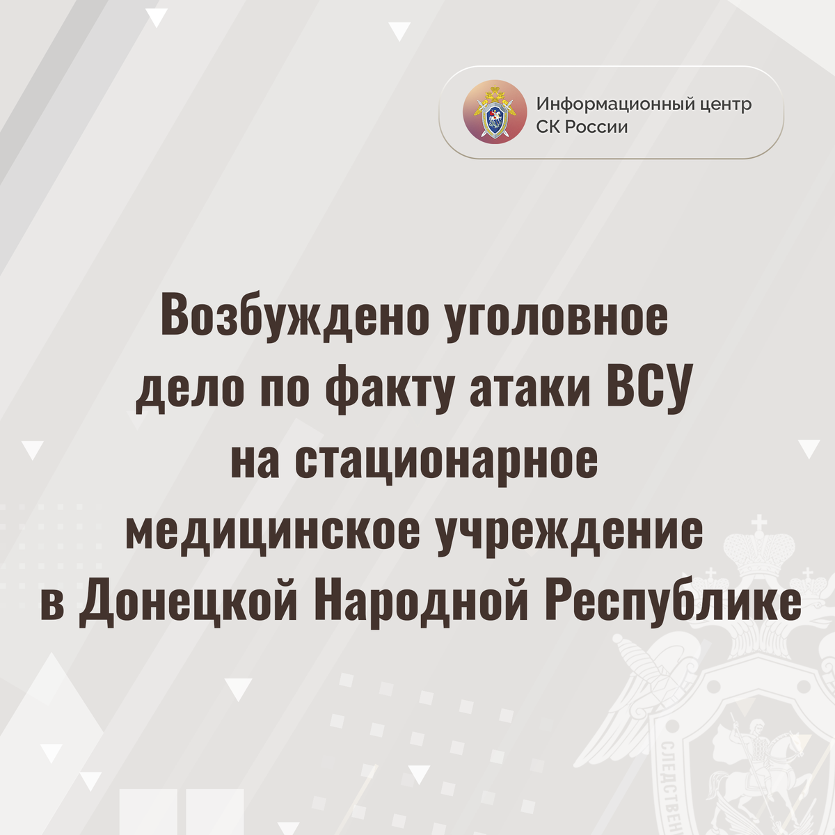 Возбуждено уголовное дело по факту атаки ВСУ на стационарное медицинское учреждение в Донецкой Народной Республике