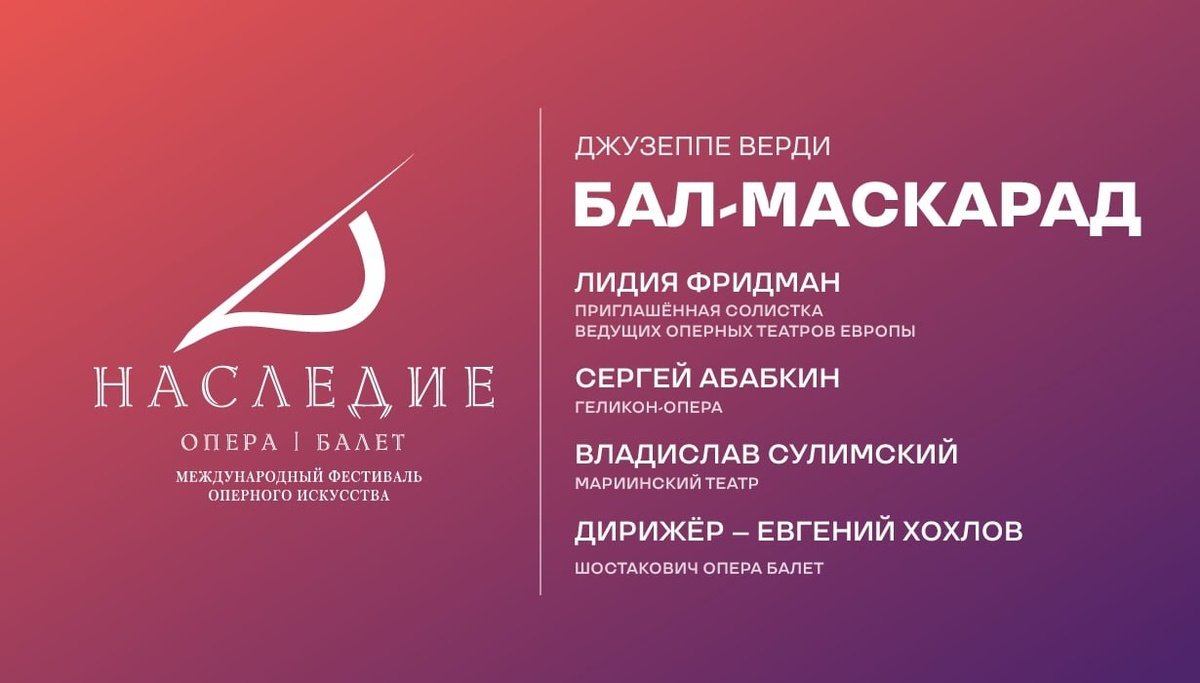 Опера»: опера Дж. Верди «Бал-маскарад» Партию Амелии исполнит Лидия Фридман, приглашённая солистка ведущих оперных театров мира. Артистка родом из Самары, в 2015 году она окончила вокальное отделение Самарского музыкального училища имени Д.Г. Шаталова, а уже в 2019 году Лидия вошла в топ-10 молодых оперных певцов по версии американского журнала «Operawire». В роли Амелии Лидия впервые выступит на сцене Шостакович Опера Балет. Партию Ричарда исполнит Сергей Абабкин, солист Московского музыкального театра «Геликон-опера». В 2023 году артист исполнил партию Сергея в опере «Леди Макбет Мценского уезда» в рамках IV Международного фестиваля искусств «Шостакович. Над временем», а в октябре 2025 года впервые исполнил партию Радамеса в опере «Аида» Джузеппе Верди в рамках гастролей Шостакович Опера Балет на 27-м Международном музыкальном фестивале музыки и танца в Бангкоке. Партию Ренато исполнит солист Мариинского театра, лучший вердиевский баритон Владислав Сулимский – первый исполнитель э