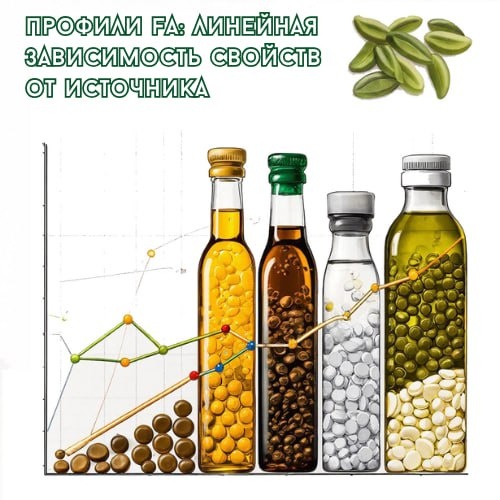 😑 Итак, пора обсудить еще один важный момент, а именно жирные кислоты. 📃 Состав жирных кислот – это "отпечаток пальца" каждого масла, определяющий его вкус, стабильность, текстуру и влияние на конечный продукт. 📌 Давайте сравним профили FA четырех популярных масел: 🔴 Подсолнечное: Высокое содержание линолевой кислоты (омега-6). Нейтральный вкус, но менее стабильно при нагревании. 🔴 Рапсовое: Высокое содержание олеиновой кислоты (омега-9) и альфа-линоленовой кислоты (омега-3). Хорошая стабильность, полезные свойства. 🔴 Соевое: Сбалансированный профиль, содержит линолевую, олеиновую и линоленовую кислоты. Универсальное масло, но может иметь специфический вкус. 🔴 Пальмовое: Высокое содержание пальмитиновой и стеариновой кислоты. Высокая стабильность при нагревании, твердое при комнатной температуре. 🕯 Линейная зависимость: ✅ Насыщенные жирные кислоты (пальмитиновая, стеариновая): Повышают стабильность, твердость, точку плавления. ✅ Мононенасыщенные жирные кислоты (олеиновая): Улуч