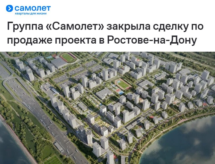 ). Слили некоему "Поколению", связанному с девелопером "Сумма Элементов" (которые в строят Дом Дау в Москва-Сити) Что касается Донских Легенд, то в прошлом году лётчики стартовали там первый дом. А весь проект размахом под 800 тыс. м2 жилья, со школами-садиками и прочим благом. С горизонтом стройки до 2042 года... Сумма сделки неизвестна. Однако, полагаю, она вполне может перекрыть приличную часть тех 50 ярдов, которые Самолёт просил у правительства в льготный кредит. Правительство в итоге тогда отказалось от предложения. И вот, светло-синий застрой нашёл таки выход Решение выглядит изящным и обоснованным. Банк у лётчиков избыточный в текущих реалиях. А Ростов не тот региона, спрос в котором может легко и быстро переваривать все заявленные там объёмы новостроя... все эти Нью Васюки... эпизоды запрета выдач РнС местной властью и проч качели... Короч, молодцы, что выкручиваются считаю @iliilitop
