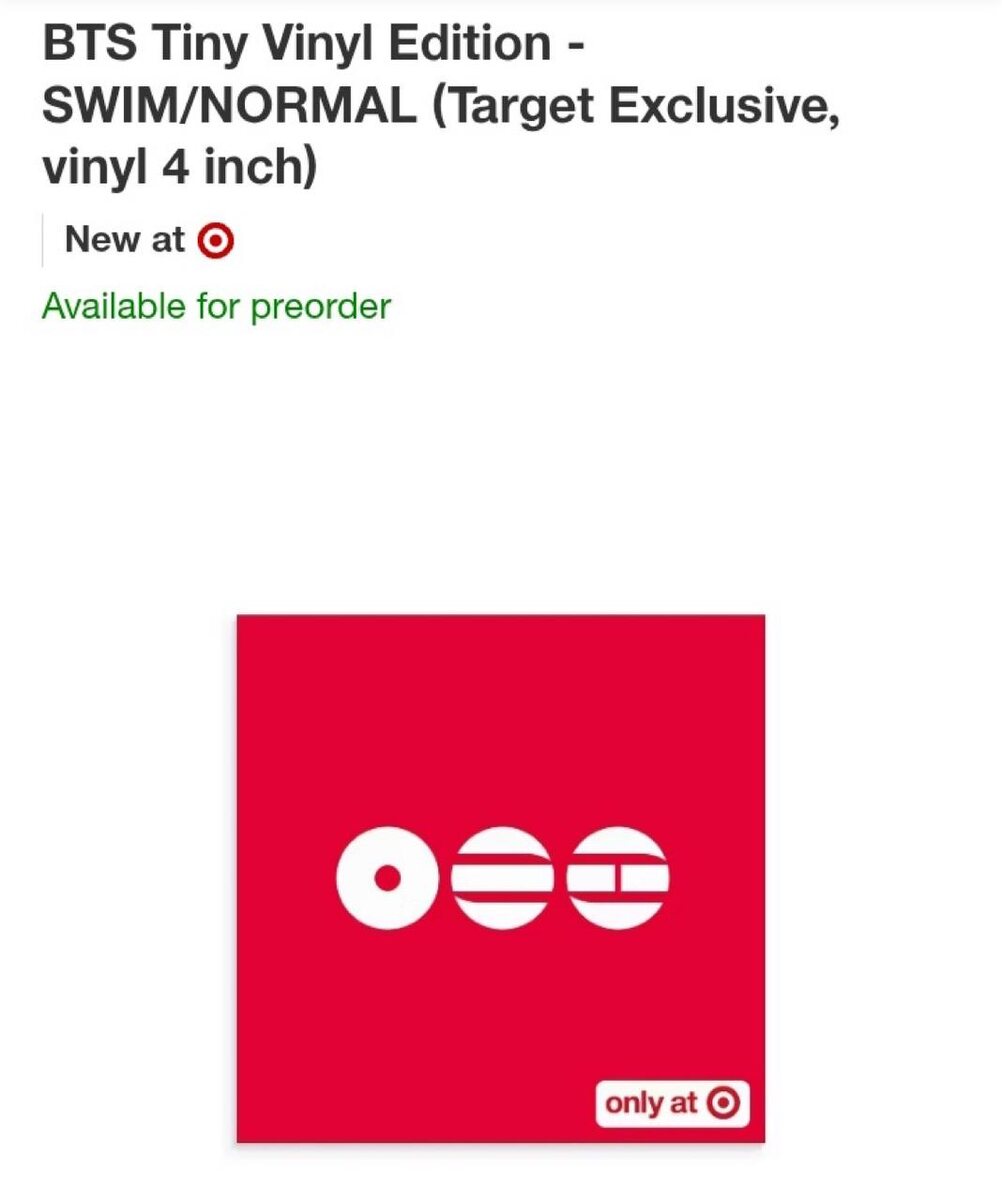 Виниловая пластинка "BTS Tiny Vinyl Edition - SWIM/NORMAL" теперь доступна для предварительного заказа в Target 🇺🇸
