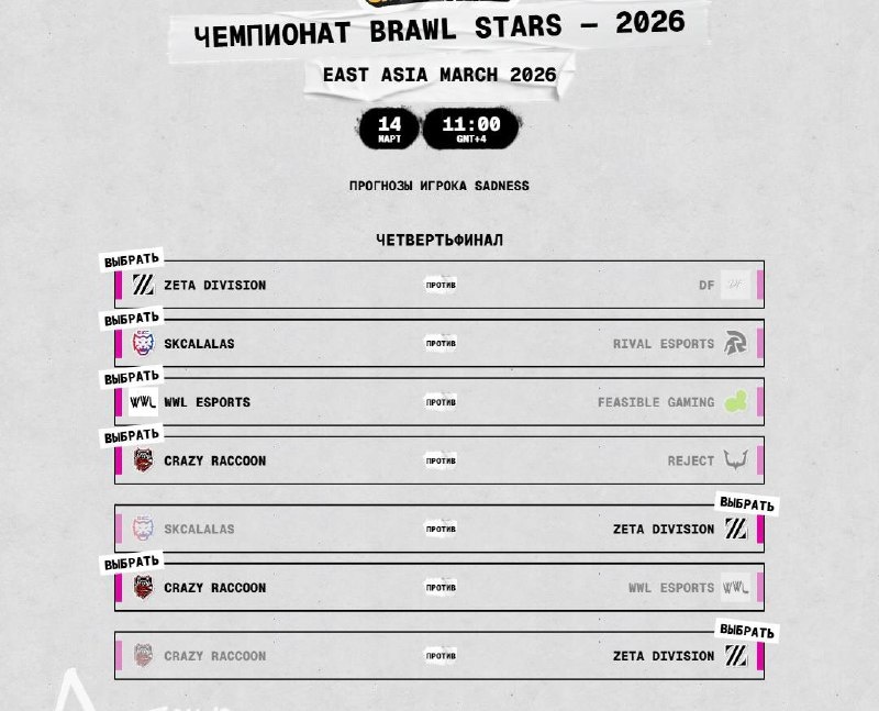 Предикты на матчи ежемесячного финала в регионе APAC доступны, поставить их можно тут. Можете воспользоваться нашими или же подсмотреть у других.
